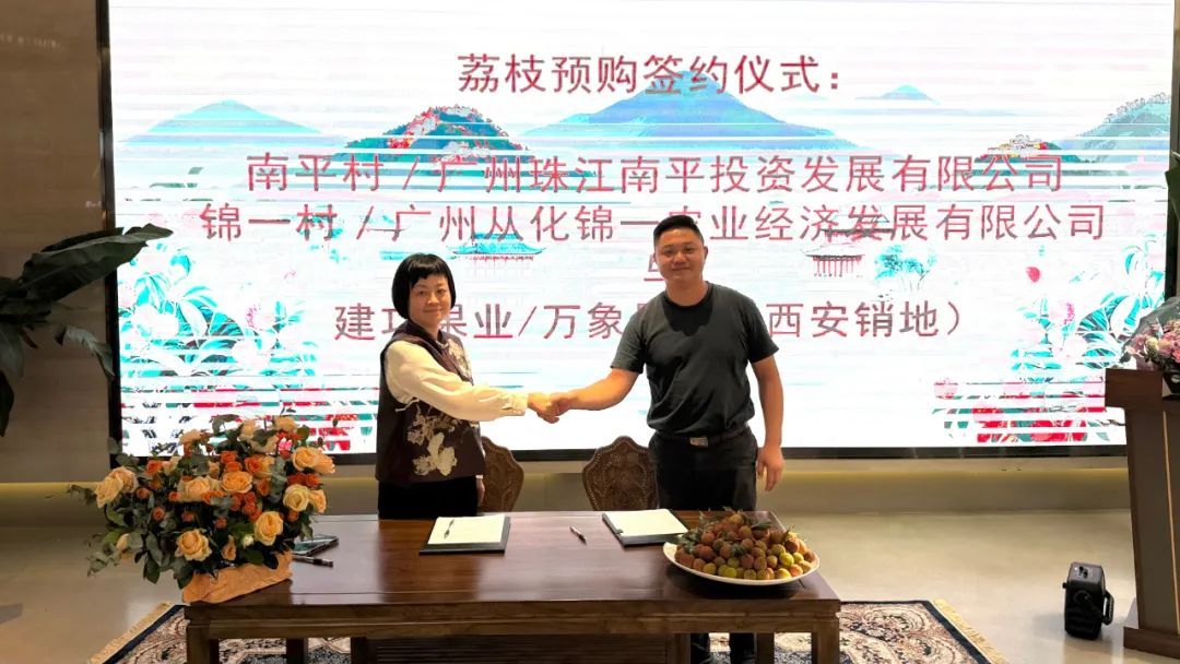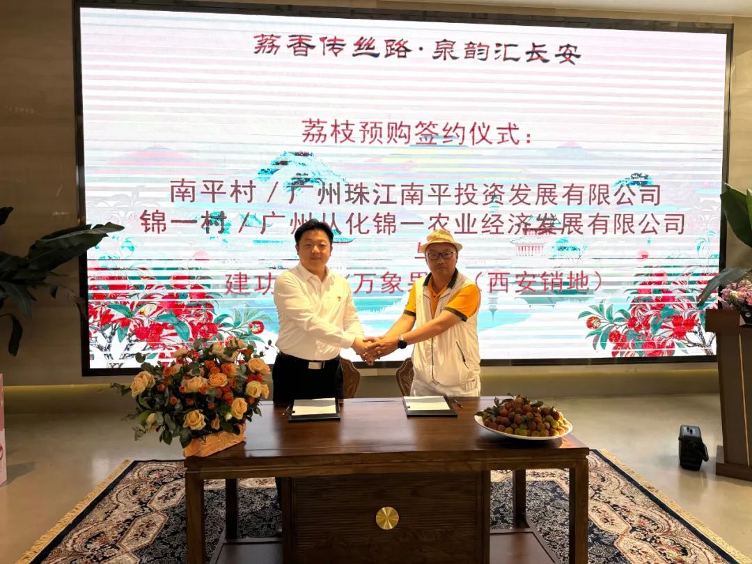 推介会现场迎来重要时刻。荔枝预购签约仪式上,南平村广州珠江南平投资发展有限公司、广州从化锦一农业经济发展有限公司与西安建功果业有限公司、西安万象果品有限公司现场签订了预购协议。这标志着从化荔枝规模化进军西北市场的战略通道正式打通。未来,来自南平村和锦一村的高品质荔枝,将依托建功果业和万象果品的成熟销售网络,快速进入西安市场,满足当地消费者对新鲜、优质荔枝的需求。